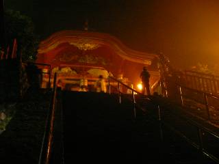 民宿を予約し、準備万端で出発。 途中、三芳PAで「笹おこわ」と「いも恋」をいただく。 いも恋は甘さ控えめでおいしかった。 順調にドライブし、青梅ICから御岳山ケーブルカー乗り場へ向かう。 ところが、、、 到着直後くらいから雨が強くなり、なんとかケーブルカー山頂駅に着くがこの日の御岳山散策は断念。 雨に濡れながら原島荘を目指す。逆にこの天気のおかげで幻想的な雰囲気を味わえた? 原島荘での夕食 和食中心の前菜 旬の鮎とホタテの鍋 青梅の地酒澤乃井、お刺身、トマトのサラダ そうめんでイガを表現して栗を模った揚げ物。中には本物の栗が入っています。 締めはそばとゴマごはん。 デザートは梨 夕食後、少し食休みした後、夜神楽(よかぐら)を見に御岳神社へ。 江戸時代から200年伝承されている舞を4種類、小一時間見学しました。 ※毎月第三日曜日20時から無料で見学できます。 最後の舞では、紅白の餅をまいてくれます。 紅白1つずつGet。 篝火が焚かれて、また昼間とは違った幻想的な雰囲気を味わえます。