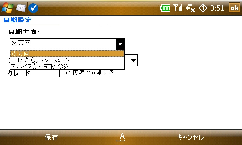 お店はワールドフットウェアギャラリー神宮前店。 Shipsで購入した茶の内羽根ウィングチップ。 穴があいたのでオールソール。 WFGで購入したLOBB'Sの外羽根Uチップ。 踵が擦り減ってきたのでトップリフトのみ交換と思ってましたが、お店の人の目利きで、ソールもヘタっているのでオールソールがよい、とのことでオールソール。 もともと雨の日用に、ラバーソールを貼っていたのですが、今回はレザーソールに。 Tomorrowlandで購入した、Stefano Bi、茶のホールカット。(元はグレーだったのだが、茶色のクリームで手入れしていたら茶色になった。。。) 一番最初に買ったStefano Biで、大切な一足です。 こちらもオールソールして、見事新品同様に生まれ変わりました。 アッパーも長年の手入れでなかなか良い感じに輝きを放っています。(^^)v ということで、結局3足オールソールすることになり、計3万以上かかってしまいましたが、新品を3足買うことから比べたら安いものだし、何より愛着があるものを捨てずに済む、というのが一番。 これからも長く履き続けようと思います。 MilkSyncの15日の試用期間が終了してしまった。 もはや手放せない。。。くぅ。。。 PayPalで25ドル支払ってProアカウント購入。 設定はごくごく簡単です。 ①アカウントを設定する メニュー>アカウントを選択 Remember the Milkのユーザー名・パスワードを記入し保存 ②同期方向を設定する 同期方向を「双方向」にすれば、RTM側、モバイルデバイス側、どちらで変更をかけても双方向で同期を取ることができます。 ③同期間隔を設定する 定期的に自動同期を取るか、手動で同期を取るか設定。自分は「手動」にしています。(自動にすると通信エラーになり同期ができない事象が発生したため。) ④同期作業 あとは左メニューの「同期」から実行するだけ 以上で、RTMとWindows Mobileの「仕事」が同期されます。 これでいつでもどこでも、タスク管理が可能です! |